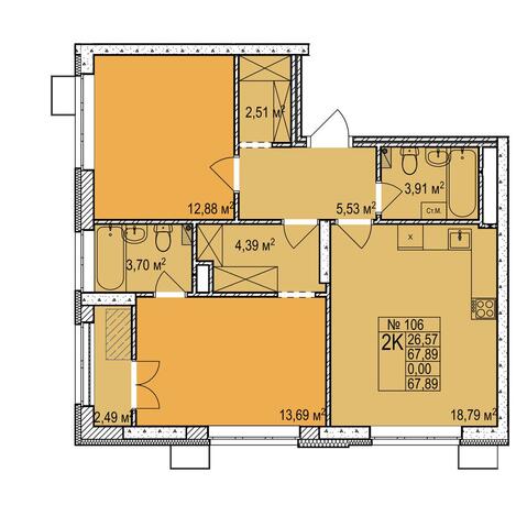 2-комнатная 67.89 м²