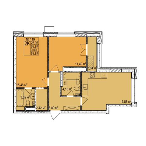 2-комнатная 63.87 м²