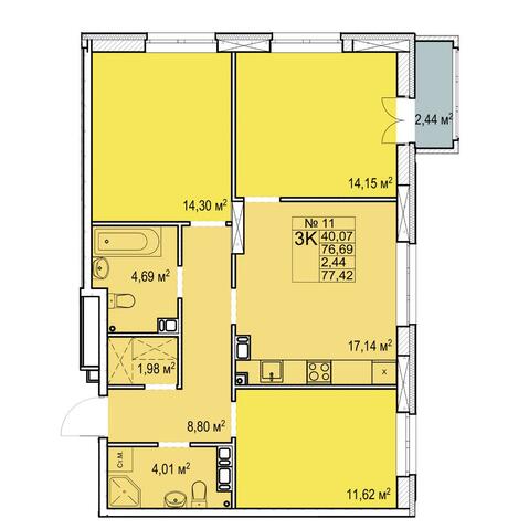 3-комнатная 77.42 м²