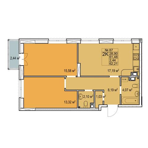2-комнатная 62.21 м²