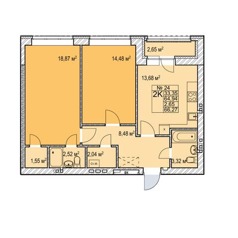 2-комнатная 66.27 м²