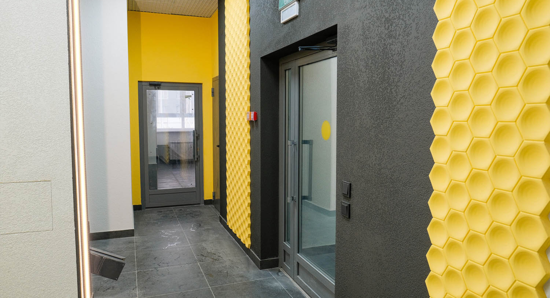 Первая очередь строительства жилого комплекса «Мед» состоит из трёх 27-этажных домов, в каждом по одному подъезду. Обширная территория двора совместит в себе тематическую детскую площадку, спортивную зону и пространство для спокойного отдыха.