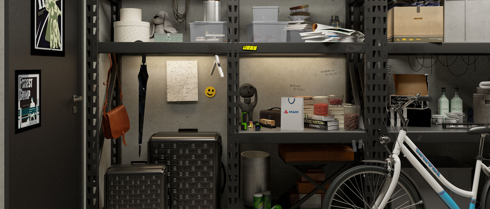 - Кладовка на этаже или в паркинге — для редко используемых предметов: санок, чемоданов, инвентаря.