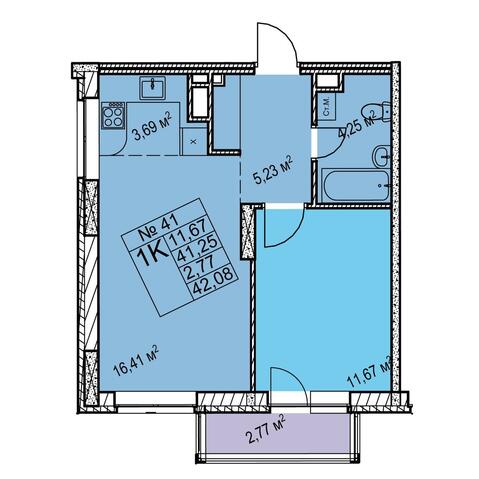 1-комнатная 42.08 м²