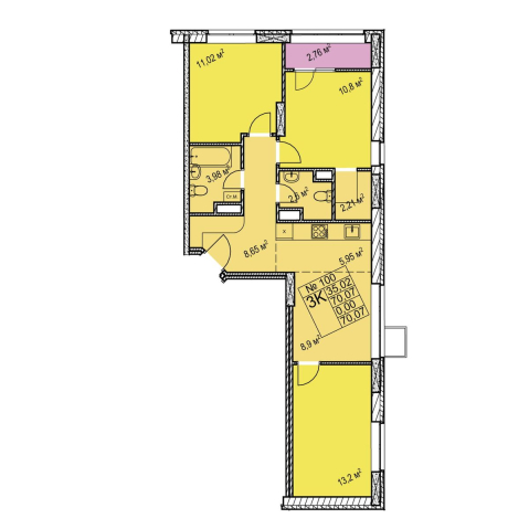 3-комнатная 70.07 м²