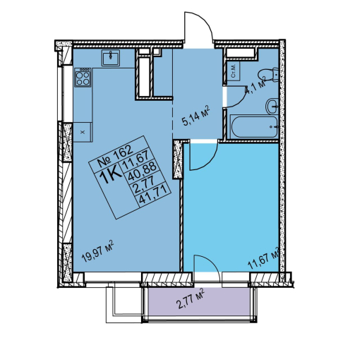 1-комнатная 41.71 м²