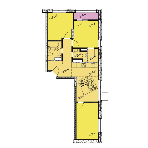 3-комнатная 69.75 м²