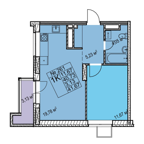 1-комнатная 41.67 м²