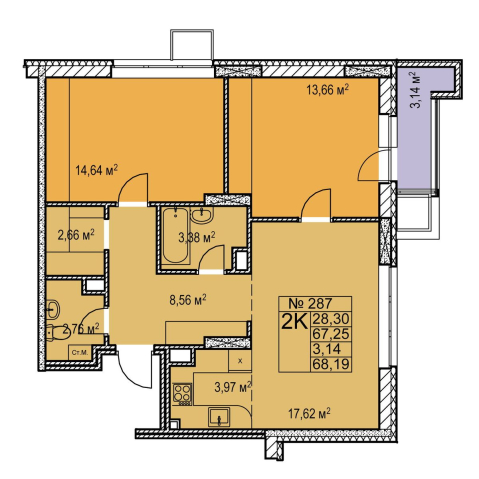 2-комнатная 68.19 м²