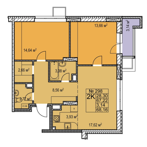 2-комнатная 68.16 м²