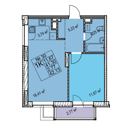 1-комнатная 42.13 м²