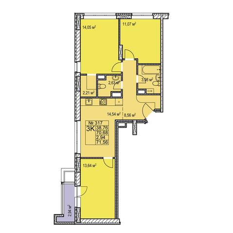 3-комнатная 71.56 м²