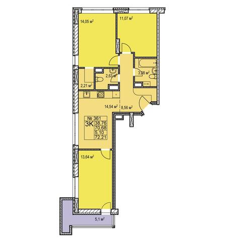 3-комнатная 72.21 м²