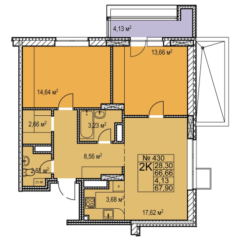2-комнатная 67.90 м²
