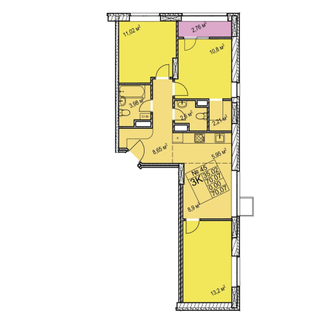 3-комнатная 70.07 м²